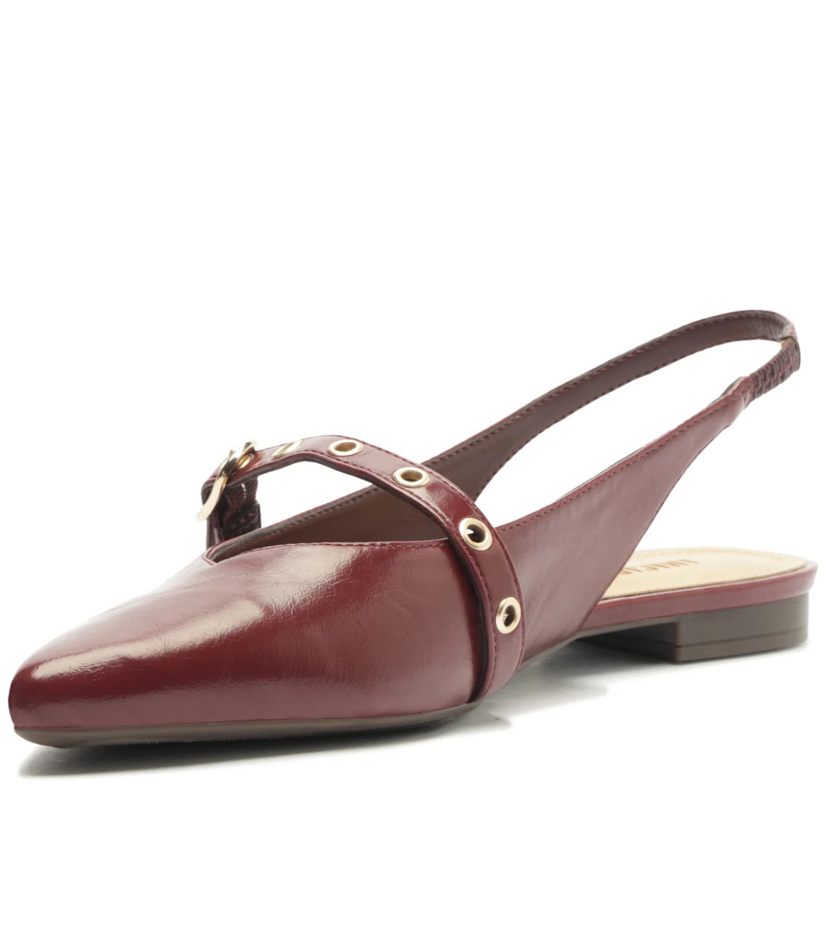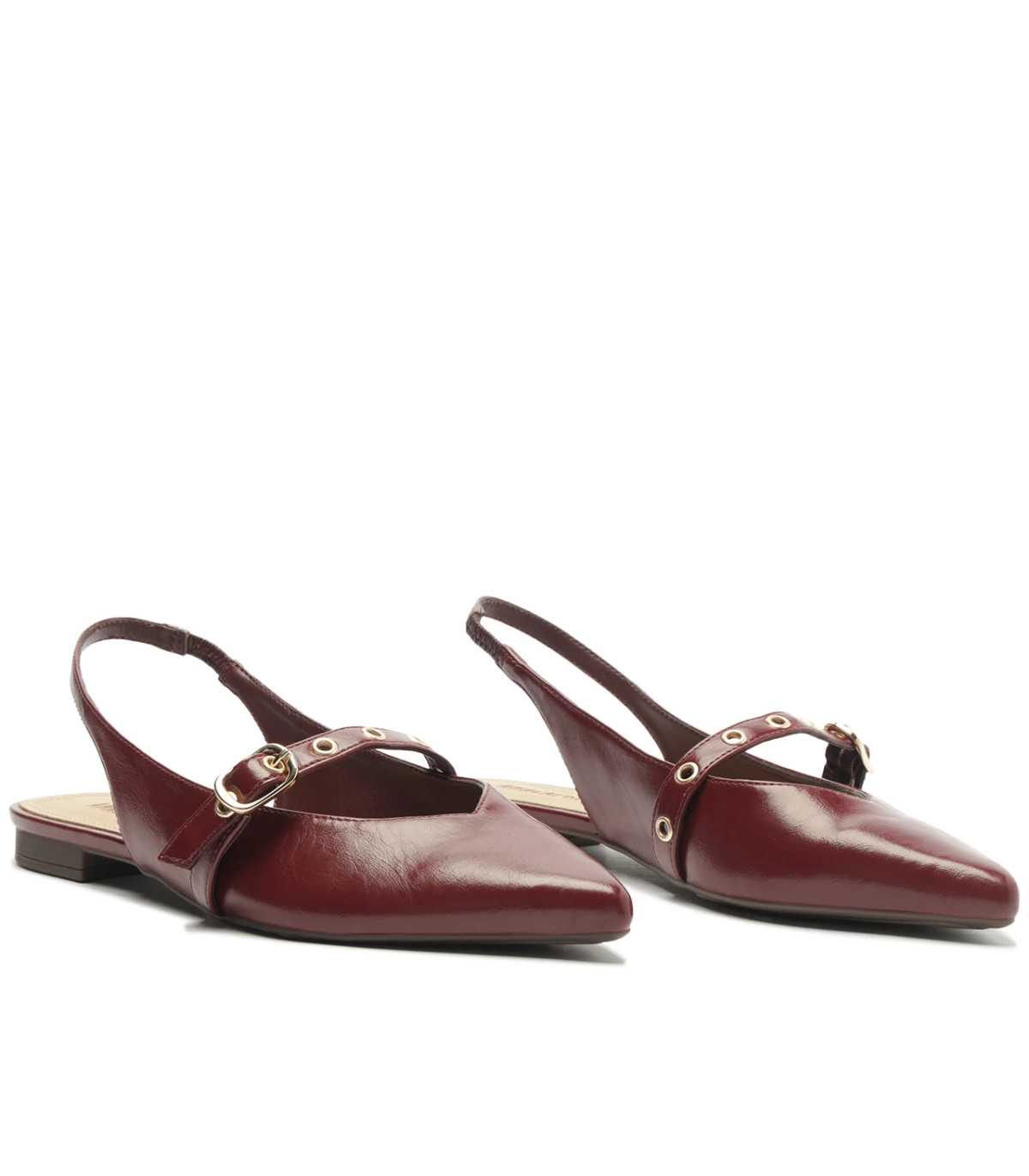 Nuestra Ballerina Celine Burdeo es el toque de elegancia y sofisticación que tu look necesita. Con su diseño slingback de punta fina, suela baja de goma y ligero taco trasero, aporta un aire moderno y lleno de actitud. Con un elegante acabado barnizado, su cierre de hebilla ajustable y las correas decorativas en el empeine añaden un detalle distintivo y chic. Ideal para looks de oficina o para disfrutar de los días con un estilo easy & chic. ¡Haz de este modelo el protagonista de tus conjuntos más frescos y llenos de estilo esta temporada!
