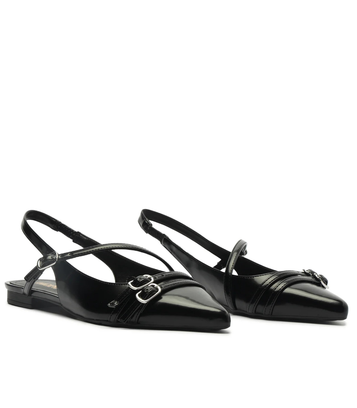 Nuestra Ballerina Celine Negra es el toque de elegancia y modernidad que tu look necesita. Con su diseño slingback de punta fina, acabado barnizado y detalles de hebillas ajustables, aporta un estilo imponente y lleno de actitud. Su suela baja de goma y ligero taco trasero aseguran comodidad y estabilidad en cada paso. Ideal para looks de trabajo o para disfrutar de las tardes, este modelo easy & chic se convertirá en tu mejor aliado para brillar con estilo en cualquier ocasión. ¡Estamos listos para destacar!