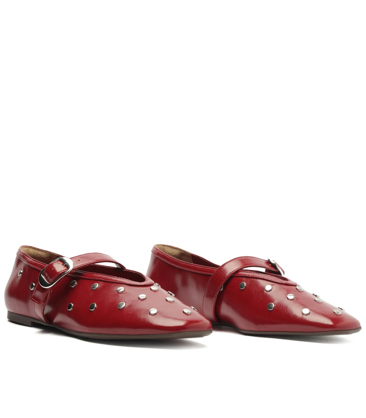 Nuestra Ballerina Katy Roja es puro encanto y sofisticación. Con su diseño cerrado, punta redondeada y detalles de tachas metálicas, aporta un toque moderno y lleno de actitud a tus looks. El acabado metalizado y la cómoda plantilla la convierten en el complemento perfecto para la temporada. ¡Combínala con shorts o faldas vaqueras para un look fresco y divertido!