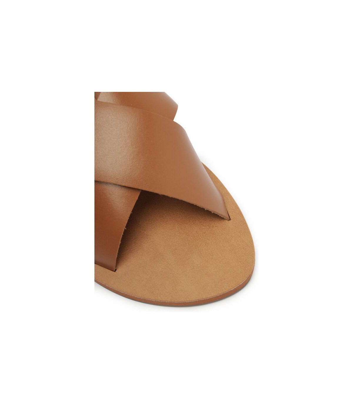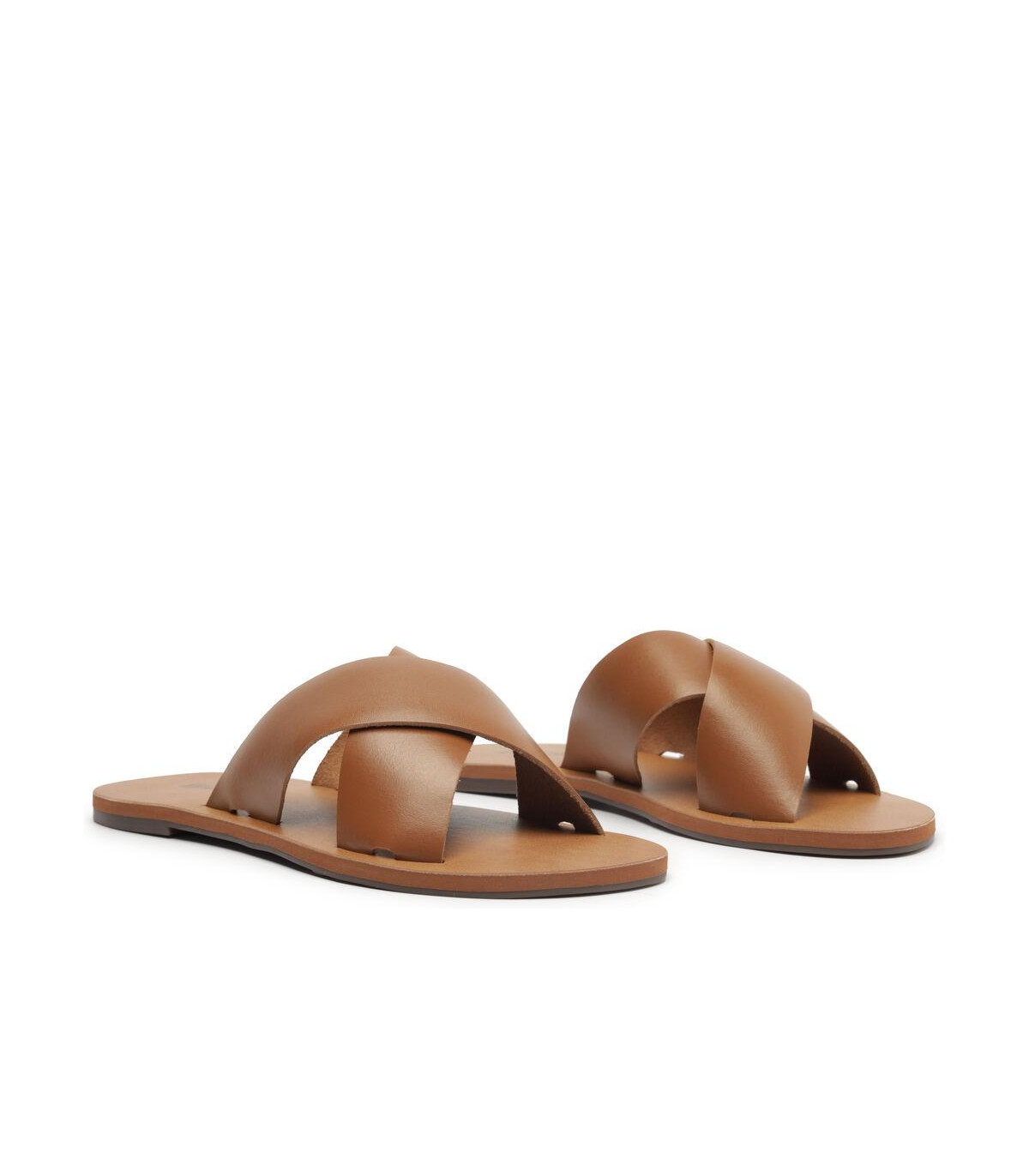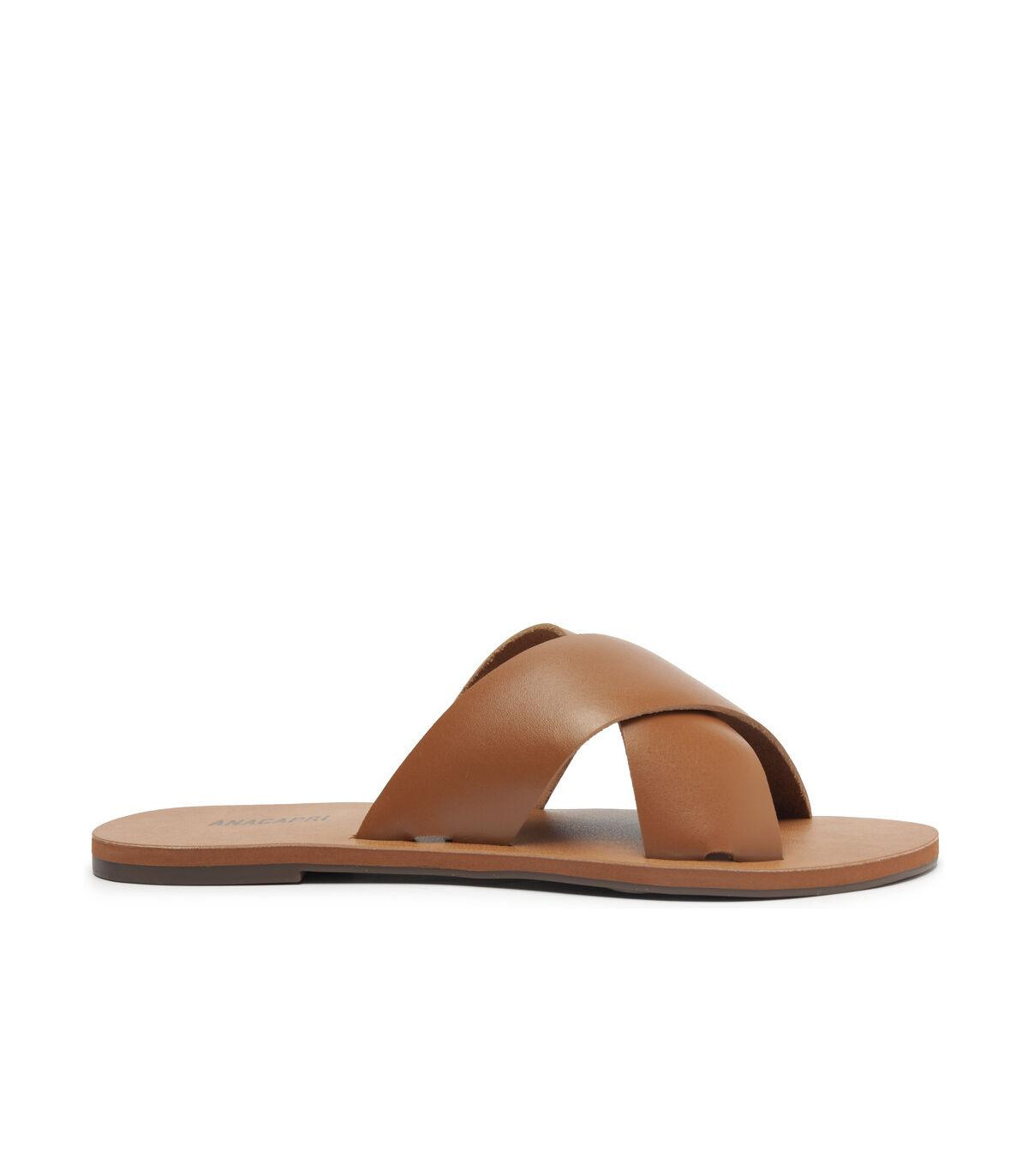 Sandalia plana de cuero marrón con dos tiras anchas cruzadas sobre el empeine. Plantilla en tono nude con el nombre de la marca. Deja los dedos y el talón al descubierto. En este modelo, recomendamos elegir una talla más grande que tu número habitual. Por qué nos encanta: ¡Si todavía no tienes este modelo de sandalia, no sabes lo que te estás perdiendo! Es versátil y fácil de calzar, y en esta versión de cuero, ofrece una durabilidad increíble gracias a su material de alta calidad. Si te consideras minimalista, tiene todo para ser tu favorita. Pero como es súper versátil, también queda genial con looks estampados, equilibrando con un calzado más neutro. ¡Con ANACAPRI no hay error!