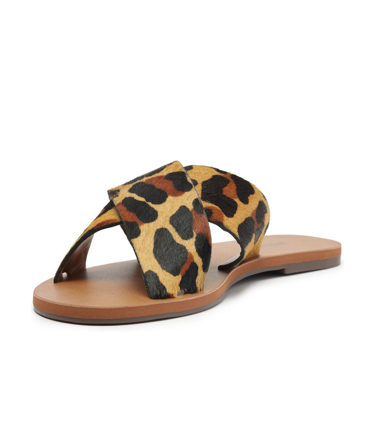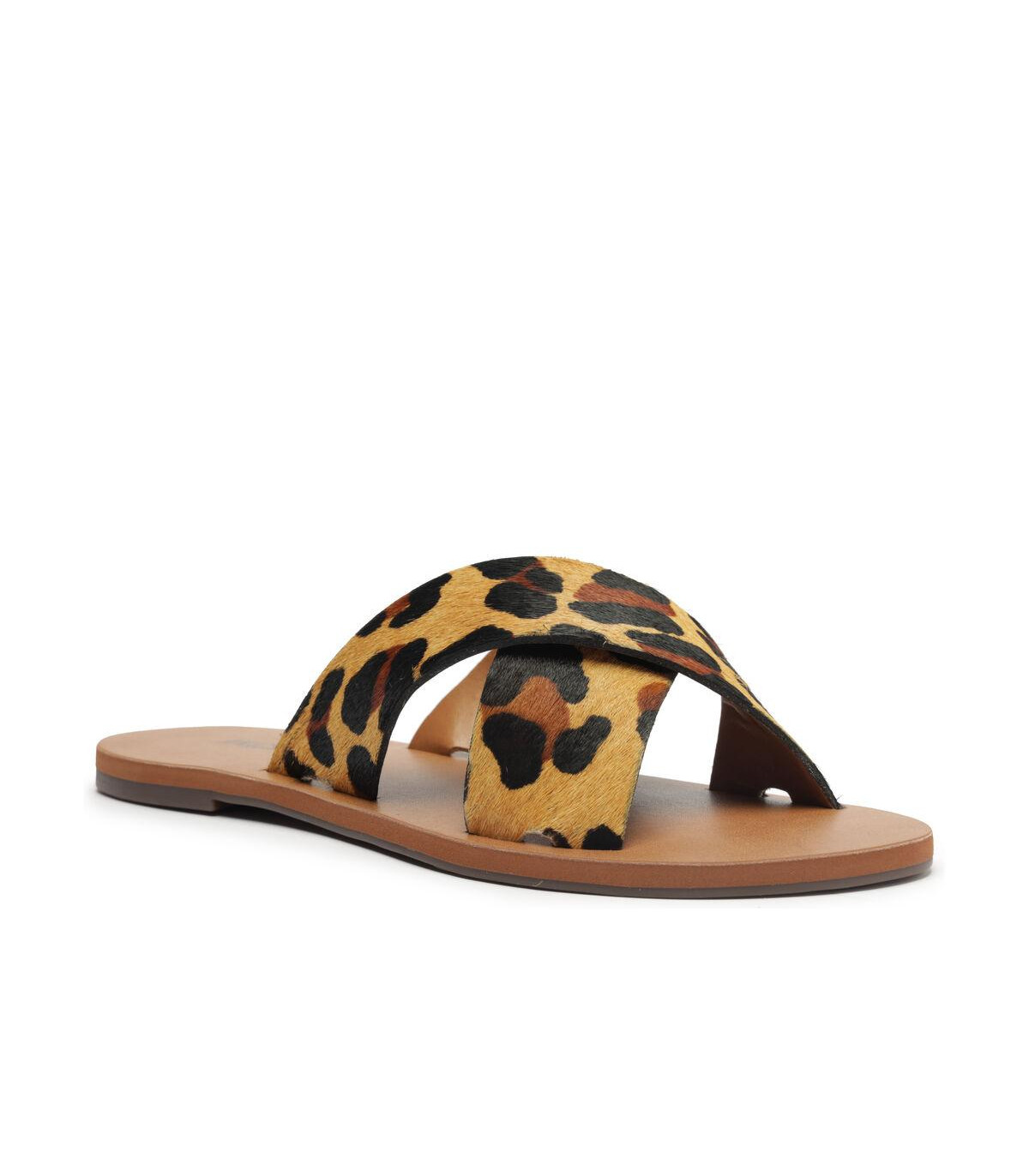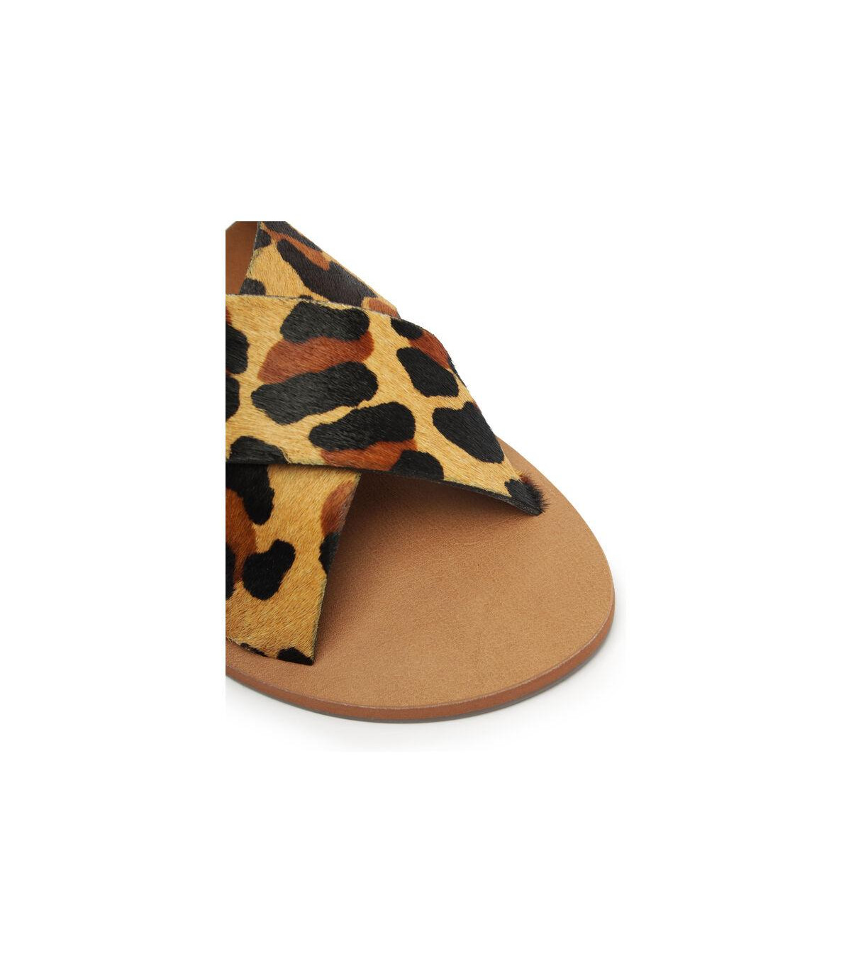 Sandalia plana de cuero con estampado animal print, con dos tiras anchas cruzadas sobre el empeine. Plantilla en tono nude con el nombre de la marca. Deja los dedos y el talón al descubierto. En este modelo, recomendamos comprar una talla más grande que la habitual. Por qué nos encanta: ¡Si aún no tienes este modelo de sandalia, no sabes lo que te estás perdiendo! Es versátil y fácil de calzar, y en esta versión de cuero, ofrece una durabilidad increíble gracias a su material de alta calidad. Si tienes un estilo más minimalista, esta sandalia puede convertirse en tu favorita. Pero su gran versatilidad también la hace perfecta para equilibrar looks estampados con un calzado más neutro. ¡No hay error con ANACAPRI!
