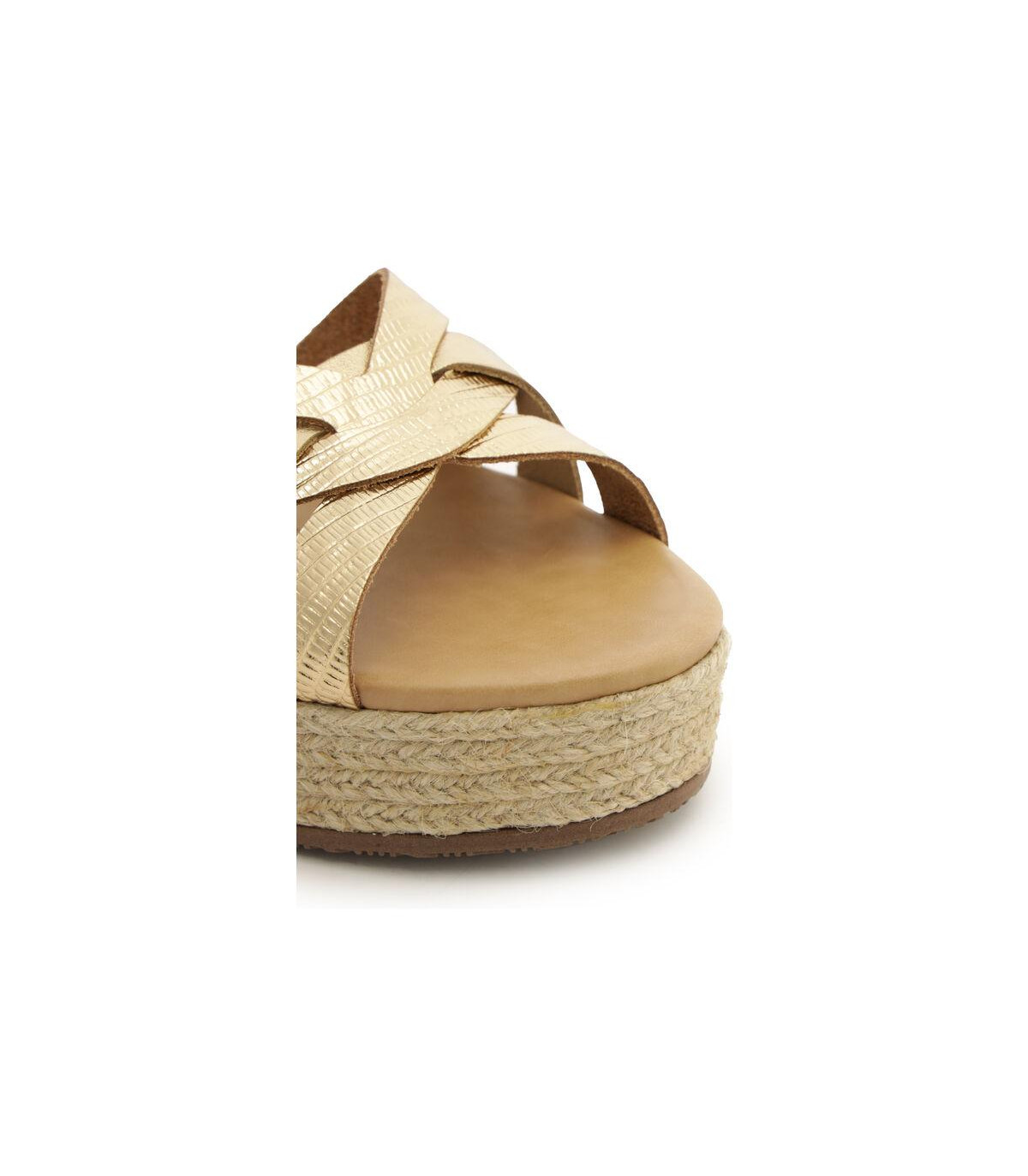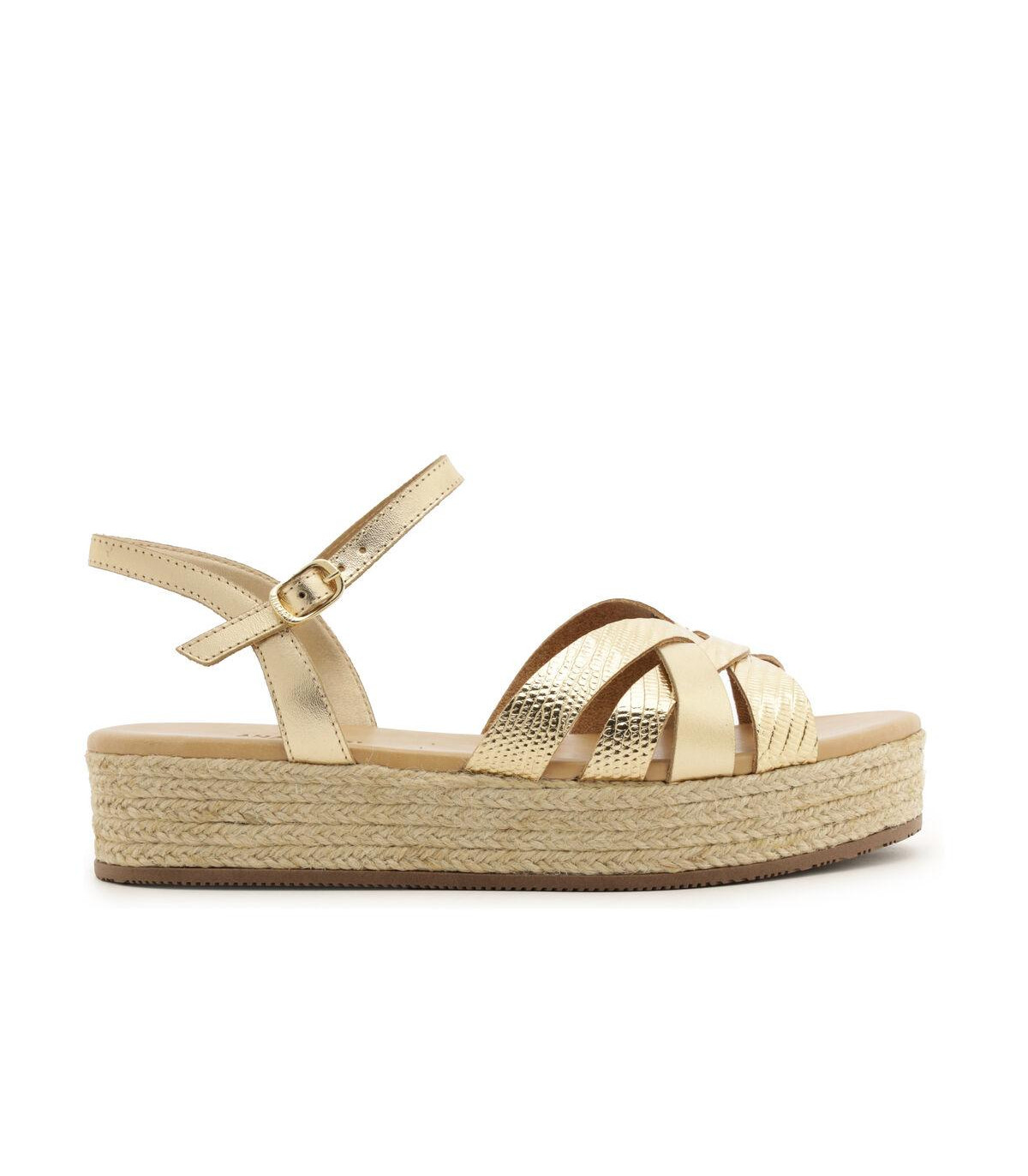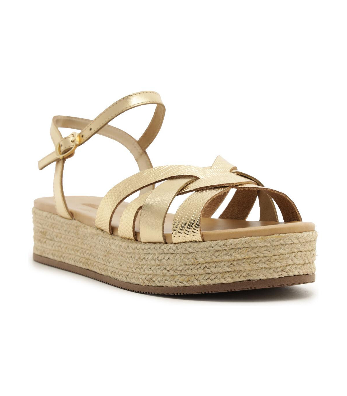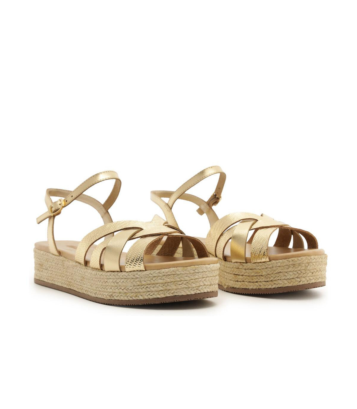 Brilla con cada paso junto a nuestra Sandalia Iris dorada es el toque de luz que tus outfits necesitan. Su diseño en cuero con delicadas tiras y plataforma forrada en yute combina estilo y comodidad. Ideal para disfrutar el verano con un aire sofisticado y relajado. ¡Camina con confianza y deja que cada paso refleje tu brillo natural!