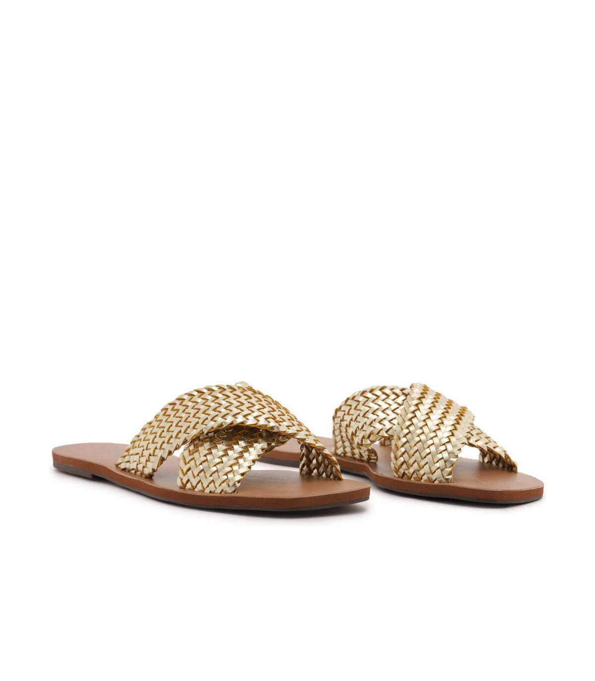 Hay zapatos que hablan por ti, y nuestra Sandalia Lupe dorada lo hace con pura elegancia. Su diseño en cuero entrelazado abraza el pie con sutileza, mientras su tono dorado atrapa la luz y la transforma en estilo. Liviana, cómoda y femenina: el toque perfecto para esos días en los que quieres destacar sin esfuerzo.
