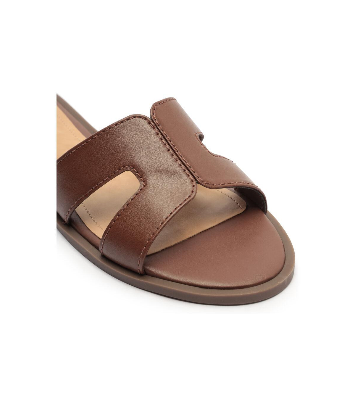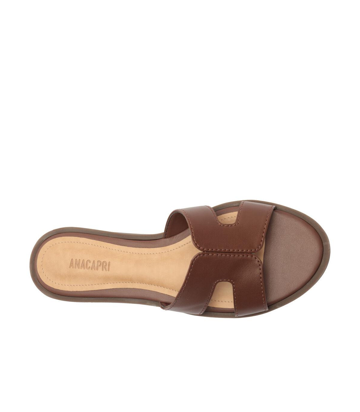 Sandalia plana presenta empeine con tiras geométricas recortadas: dos tiras anchas en material similar al cuero, con diseño de cortes en forma de H sobre el empeine. Abierta, con punta redonda, tiene plantilla cómoda y elevada, con borde de costuras visibles y la firma Anacapri. Suela de goma color nude con un pequeño tacón trasero. El modelo deja los dedos y el talón completamente al descubierto. Por qué apostar: Minimalista, con diseño de recortes, combina perfecto con looks frescos y ligeros. De calce sencillo, es versátil y viene en una paleta de colores neutros para disfrutar lo mejor de la estación con un mood easy & comfy.