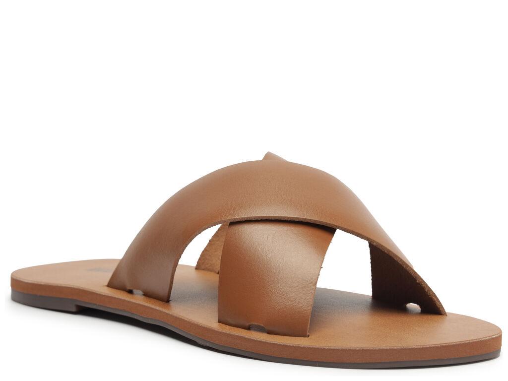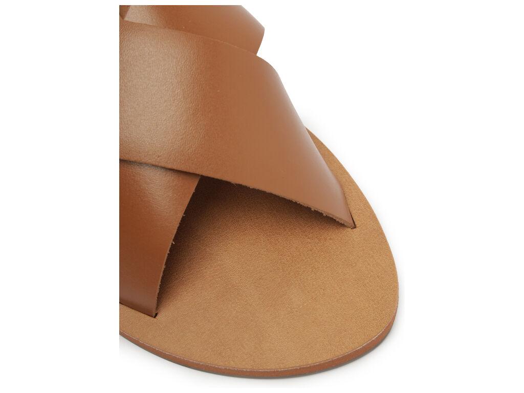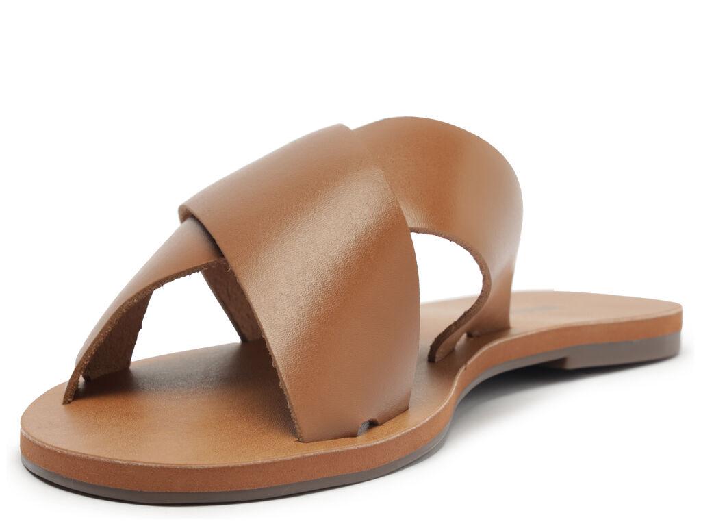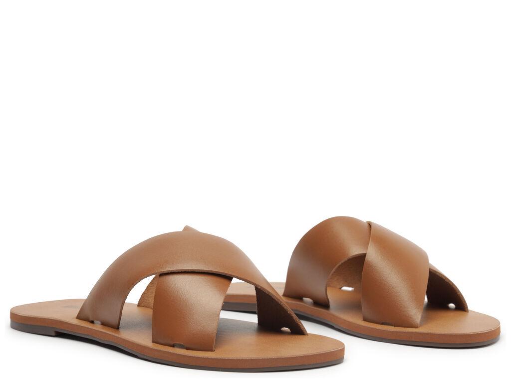 Sandalia plana de cuero marrón con dos tiras anchas cruzadas sobre el empeine. Plantilla en tono nude con el nombre de la marca. Deja los dedos y el talón al descubierto. En este modelo, recomendamos elegir una talla más grande que tu número habitual. Por qué nos encanta: ¡Si todavía no tienes este modelo de sandalia, no sabes lo que te estás perdiendo! Es versátil y fácil de calzar, y en esta versión de cuero, ofrece una durabilidad increíble gracias a su material de alta calidad. Si te consideras minimalista, tiene todo para ser tu favorita. Pero como es súper versátil, también queda genial con looks estampados, equilibrando con un calzado más neutro. ¡Con ANACAPRI no hay error!