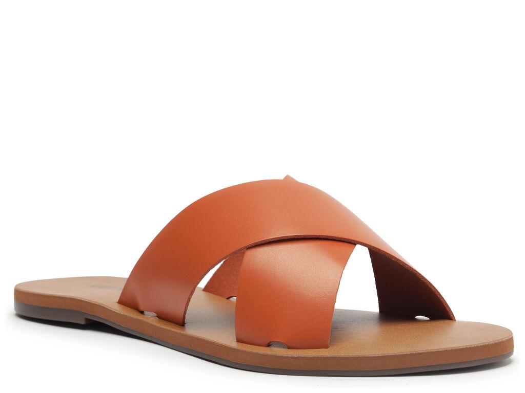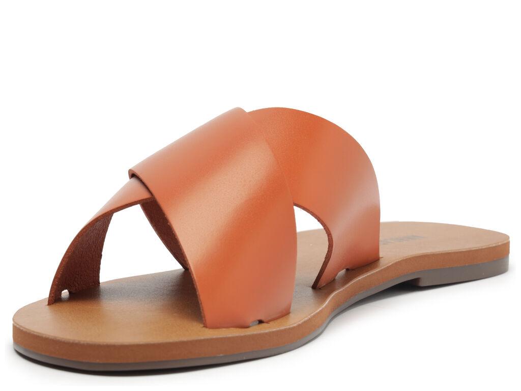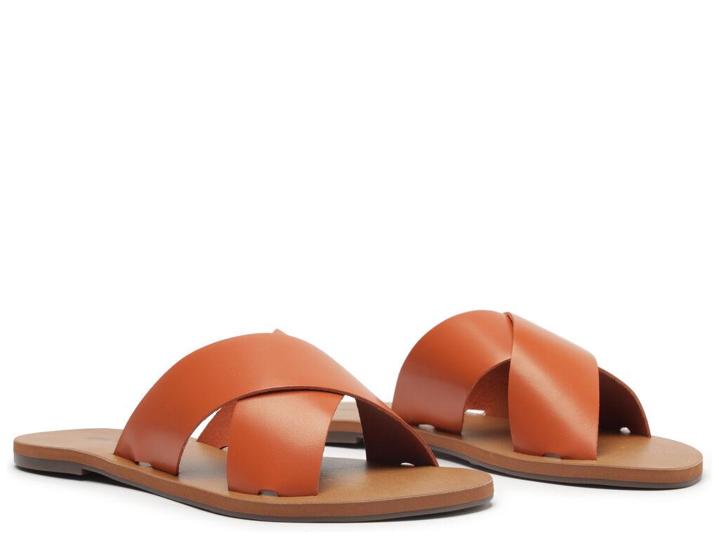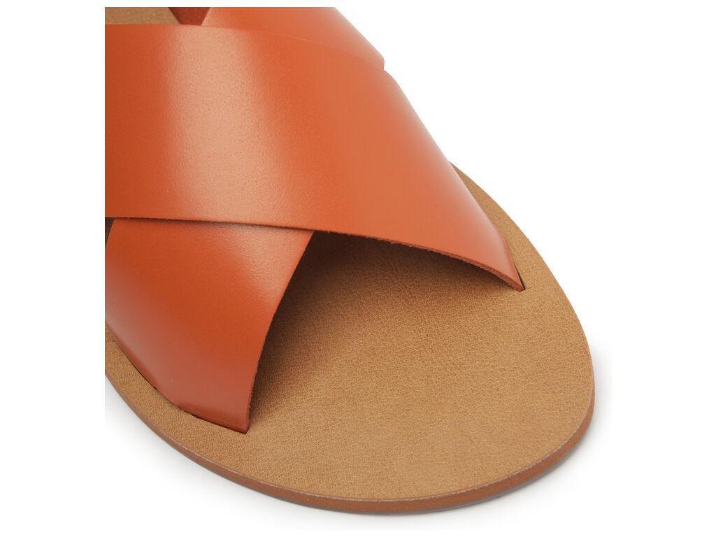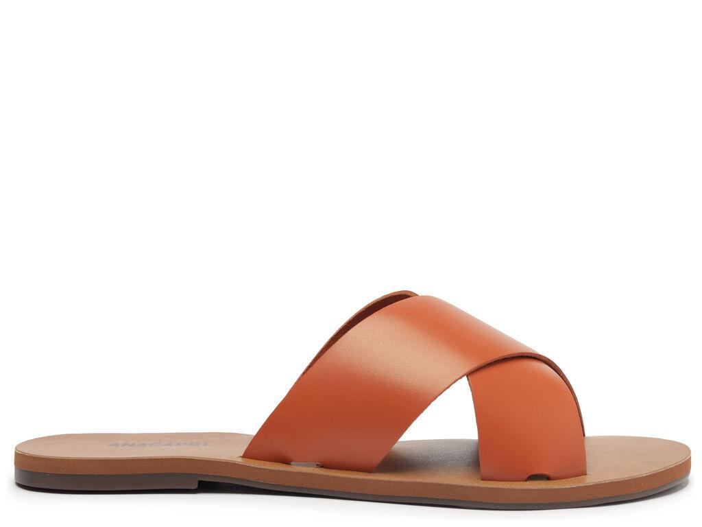 Sandalia plana de cuero en tono marrón damasco con dos tiras anchas cruzadas sobre el empeine. Plantilla en tono nude con el nombre de la marca. Deja los dedos y el talón al descubierto. En este modelo, recomendamos elegir una talla más grande que tu número habitual. Por qué nos encanta: ¡Si todavía no tienes este modelo de sandalia, no sabes lo que te estás perdiendo! Es versátil y fácil de calzar, y en esta versión de cuero ofrece una durabilidad increíble gracias a su material de alta calidad. Si te consideras minimalista, tiene todo para convertirse en tu favorita. Y como es súper versátil, también queda perfecta con looks estampados, aportando equilibrio con un calzado más neutro. ¡Con ANACAPRI no hay error!